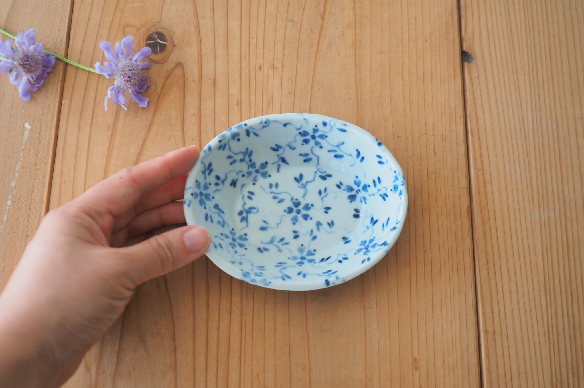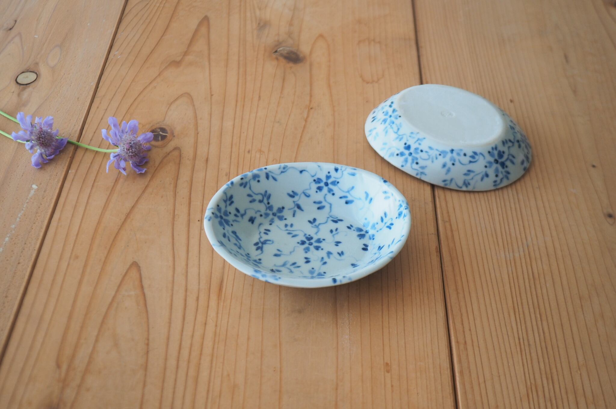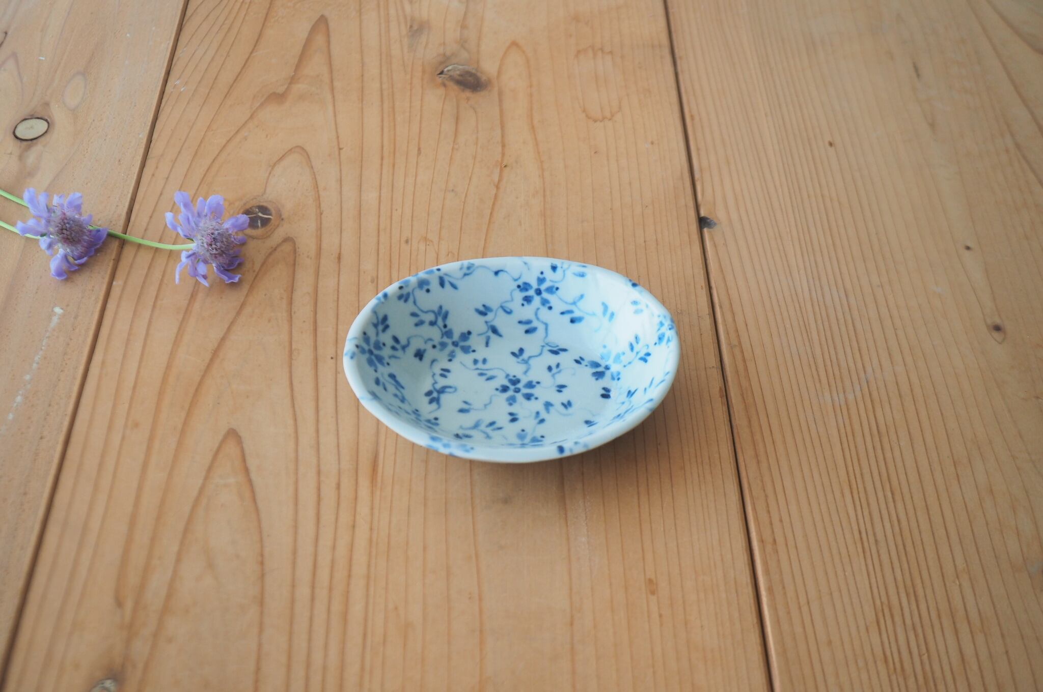 花つる草の模様が全体に描かれた、少し深さのある小皿です。